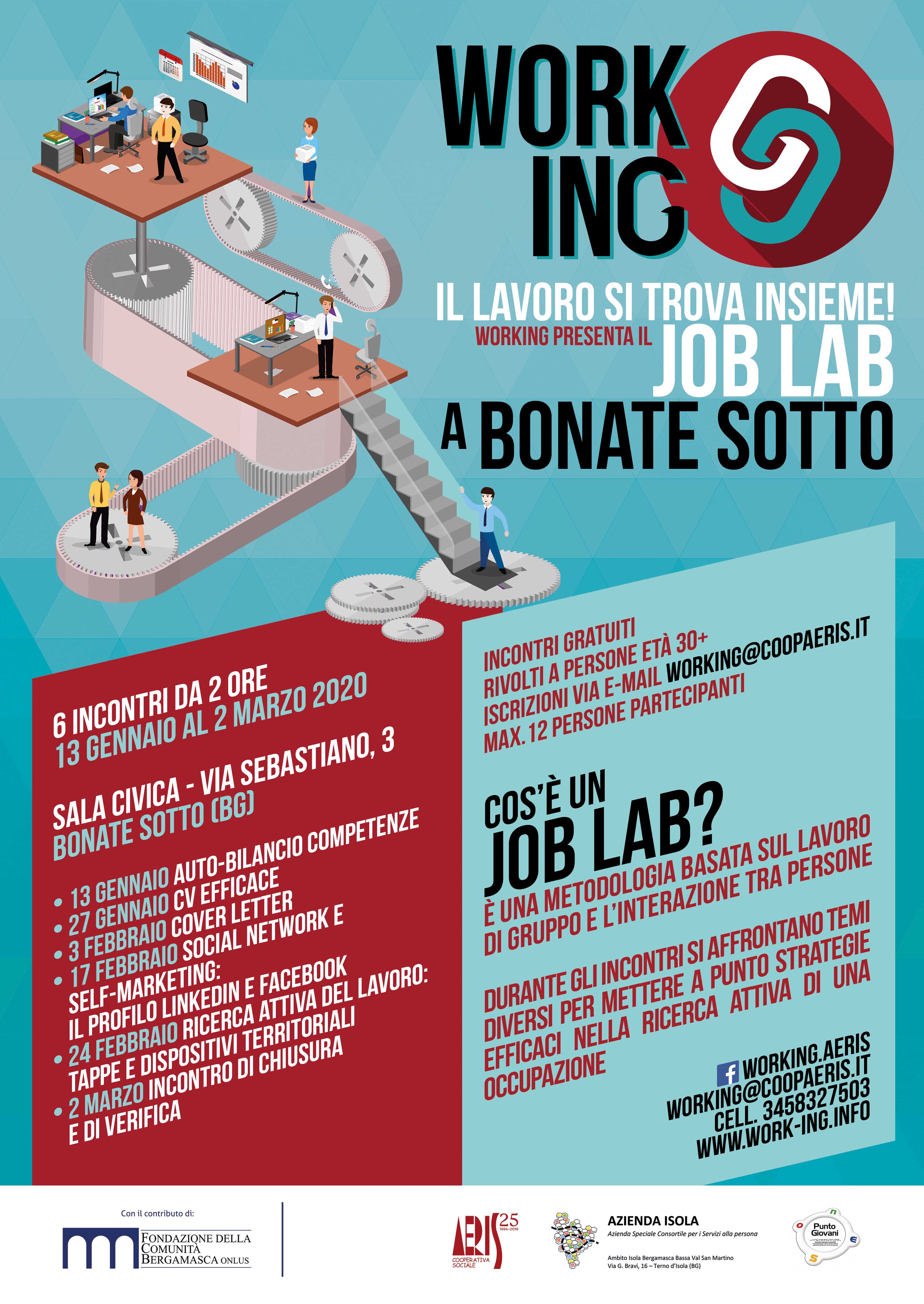 - Rubrica offerte di lavoro, sul territorio provinciale, a cura de “La Voce delle Valli”:- “Il Lavoro si trova insieme”: avvio del Job Lab a partire del 13 gennaio 2020, presso la Sala Civica di Bonate Sotto. In allegato locandina.