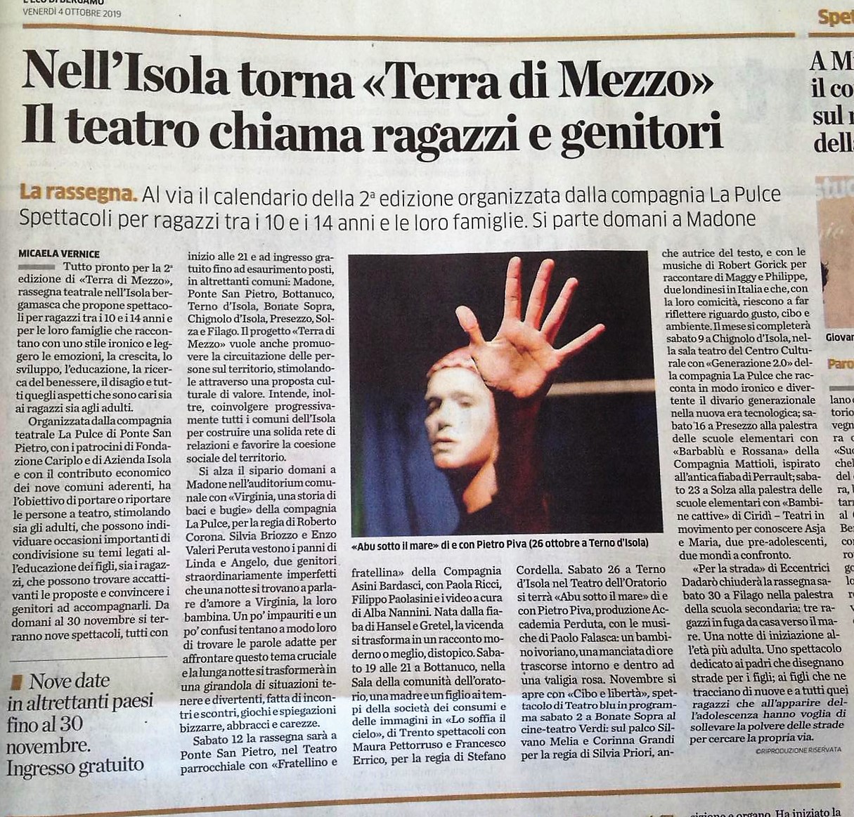 Articolo L'Eco di Bergamo del 04 ottobre 2019