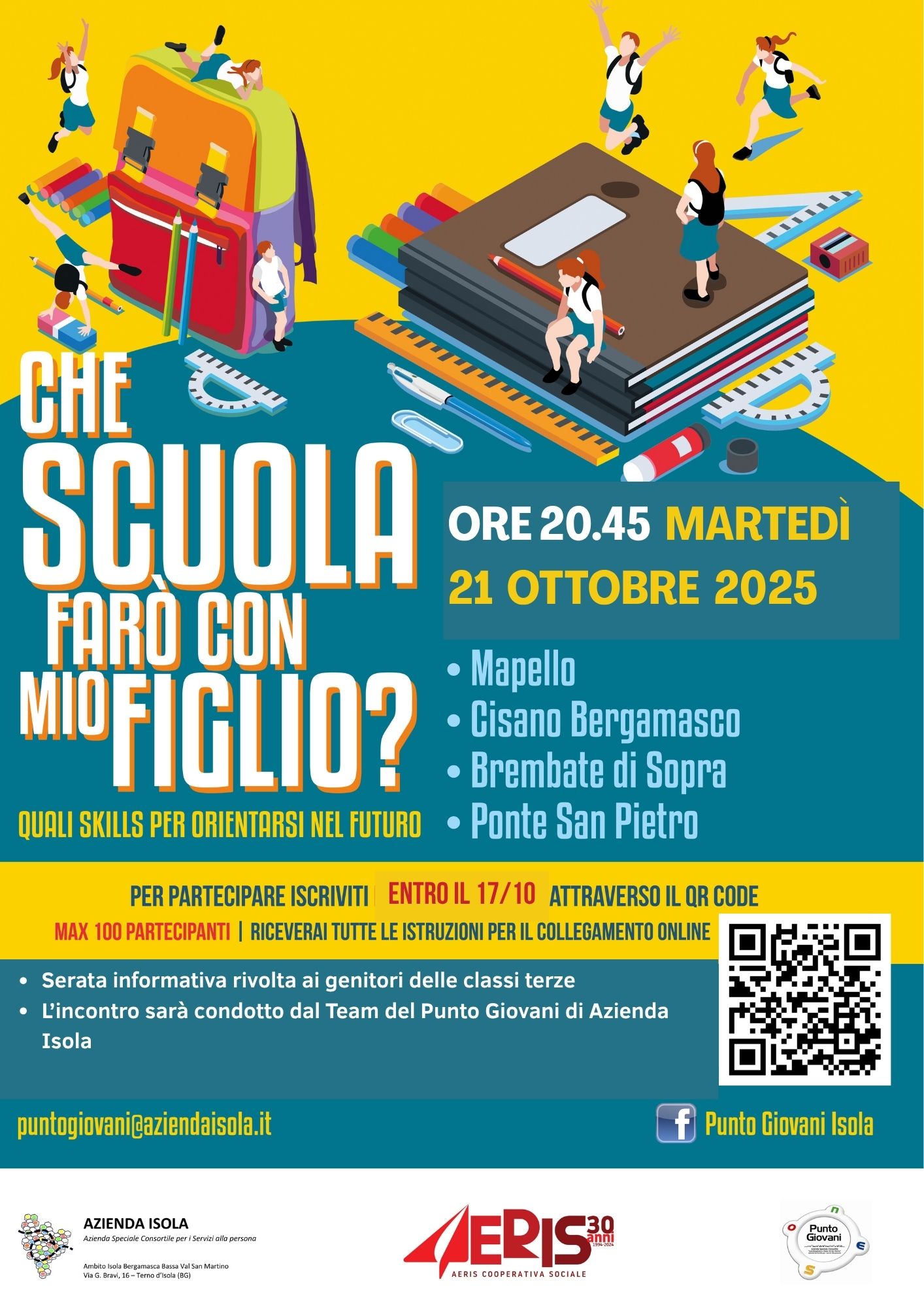 Martedì 21 ottobre ore 20,45 per Istituti Compensivi di Mapello, Cisano Bergamasco, Brembate di sopra e Ponte San Pietro