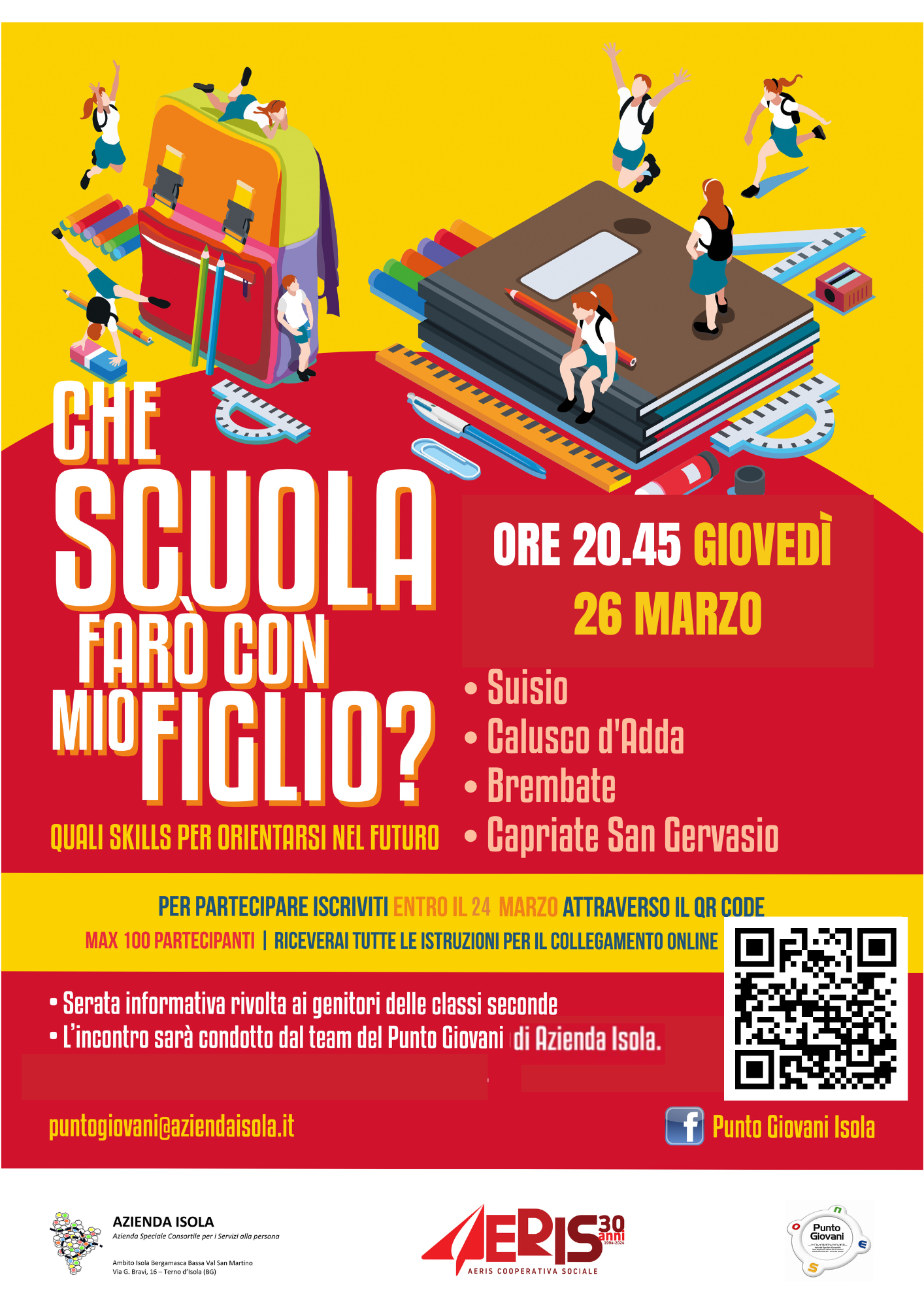 Il Punto Giovani presenta "Che scuola farò con mio figlio?" un ciclo di tre webinar dedicati ai genitori degli studenti frequentanti la classe seconda della scuola secondaria di primo grado.